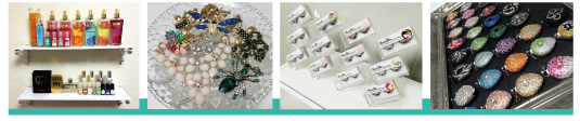 豊富なデコ制作サンプルや、デコマツゲ、LAデザイナーズアクセサリー等、物販コーナーも充実。 |
