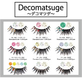 自社オリジナル商品【デコマツゲ®】。高品質クリスタルラインストーン付のドレッシーなつけまつげ。自分使いにはもちろん、プレゼントにも 好評の全12色を常備販売中。 |